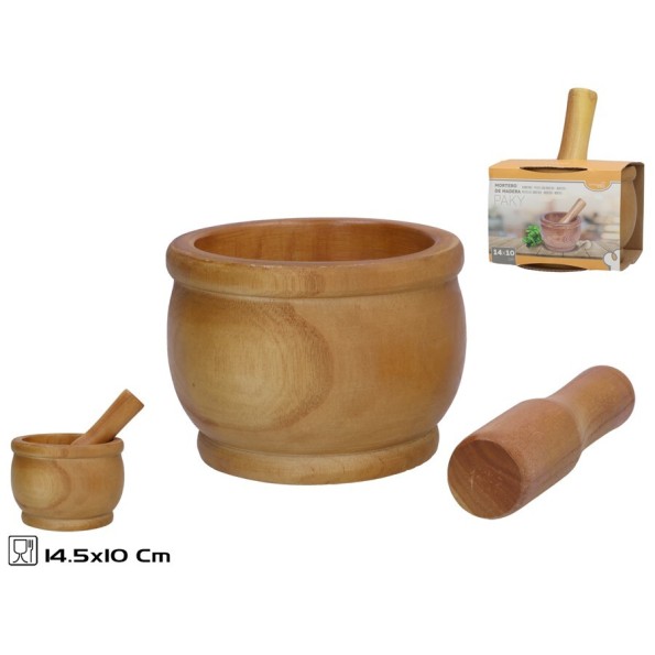 MORTERO MADERA CON MANGO PAKY 14,5X10CM