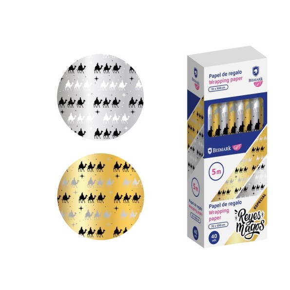 PAPEL DE REGALO METALIZADO REYES MAGOS 70X500 CM