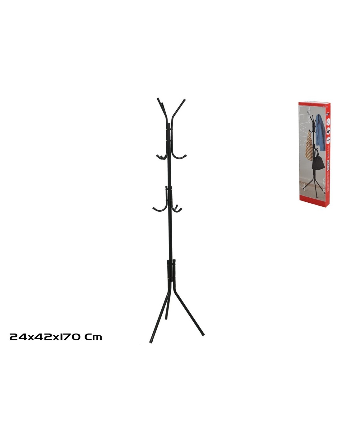 PERCHERO METAL C/9 GANCHOS LEWIS D25X42X170CM NEGRO