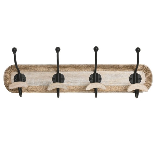 PERCHERO PARED MANGO CUERDA 52X10X18 4 GANCHOS