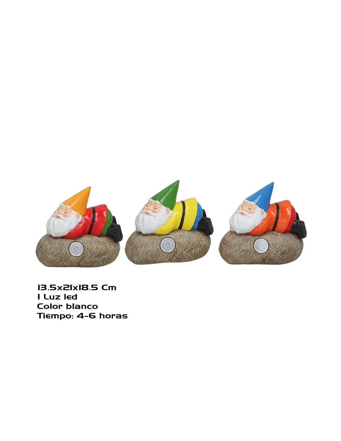 PIEDRA C/GNOMO LUZ SOLAR LED 21X13,5X18,5 CM 6H