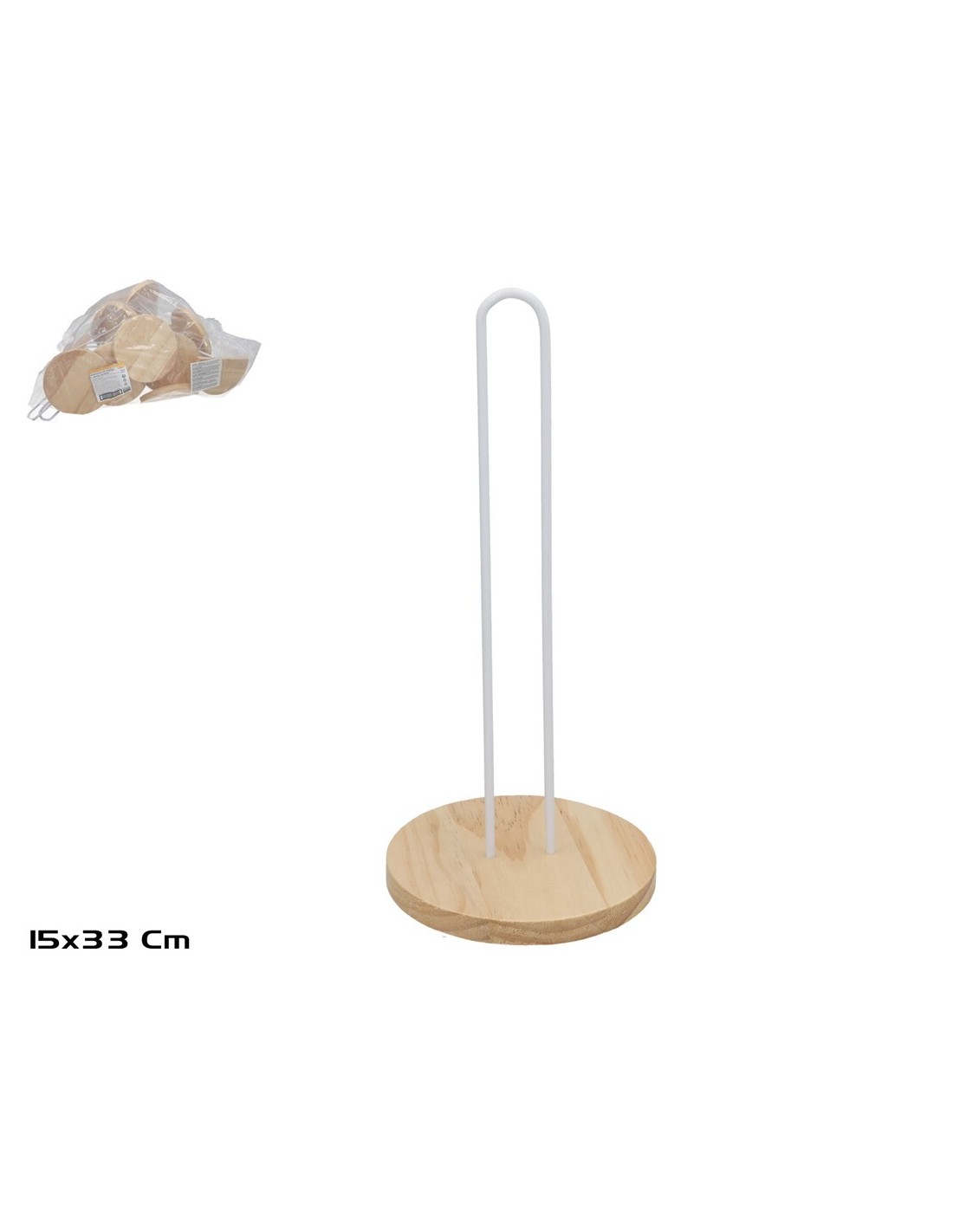 PORTAROLLOS MADERA+METAL LOLA 15X33CM BLANCO