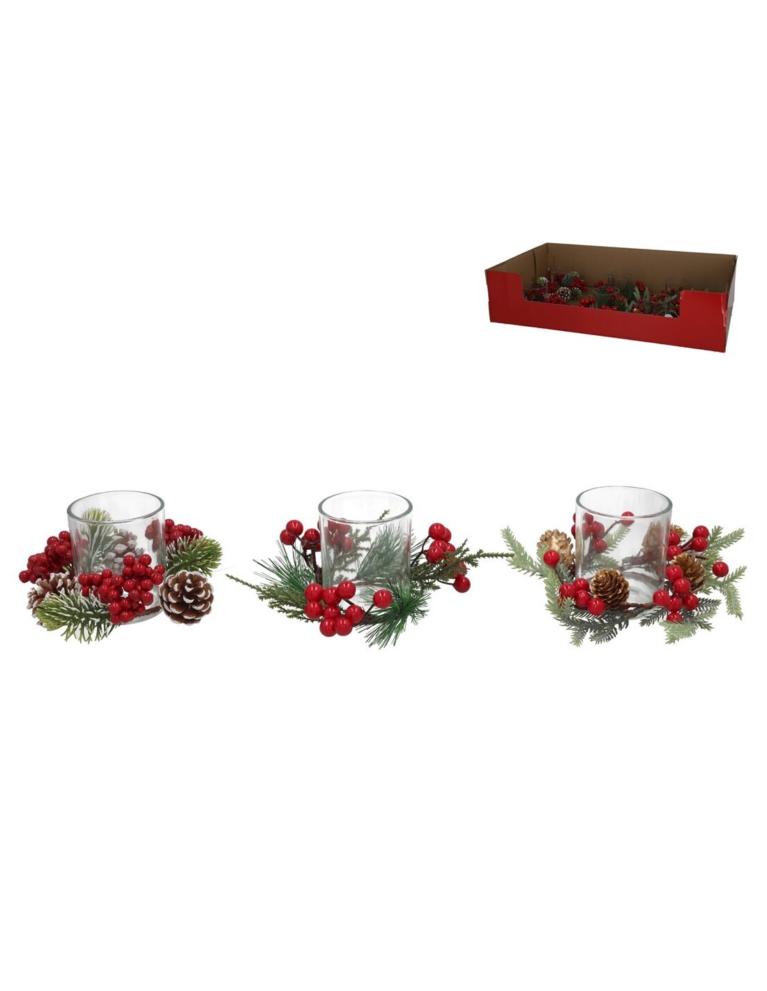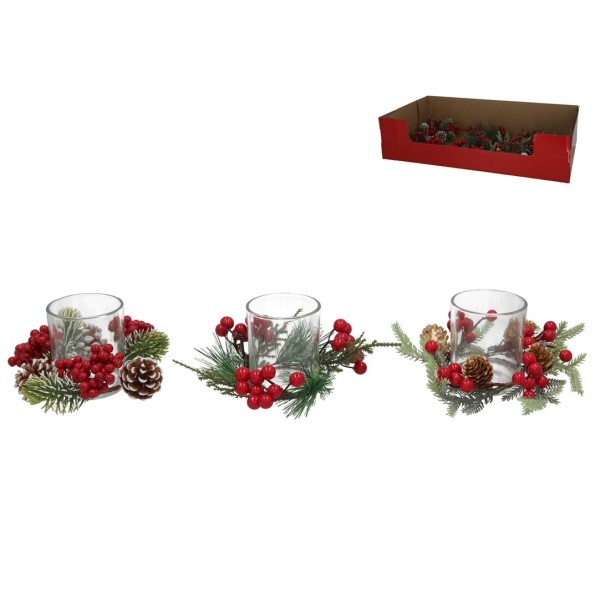 PORTAVELA CRISTAL C/BAYAS ROJAS 18X19X8,5CM 3STD