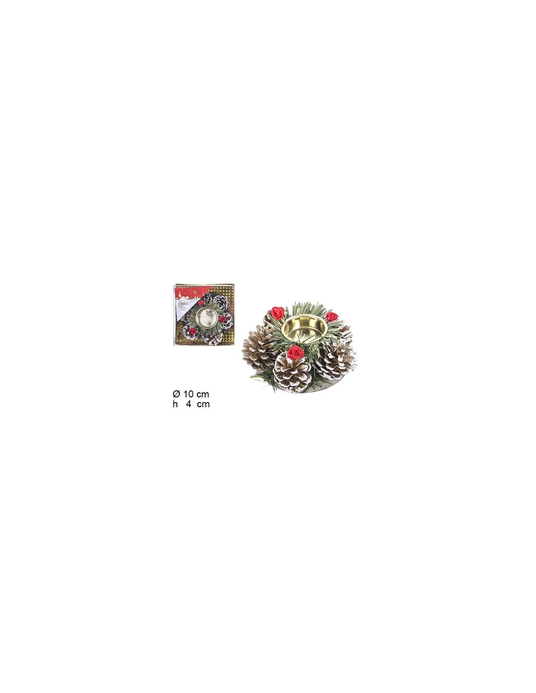 PORTAVELA PIÑA NAVIDAD ORO 10X10X4cm