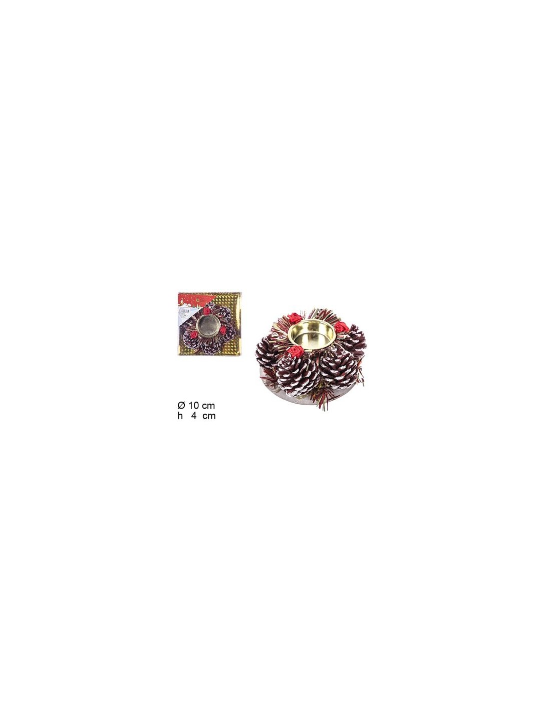 PORTAVELA PIÑA NAVIDAD ROJA 10X10X4cm