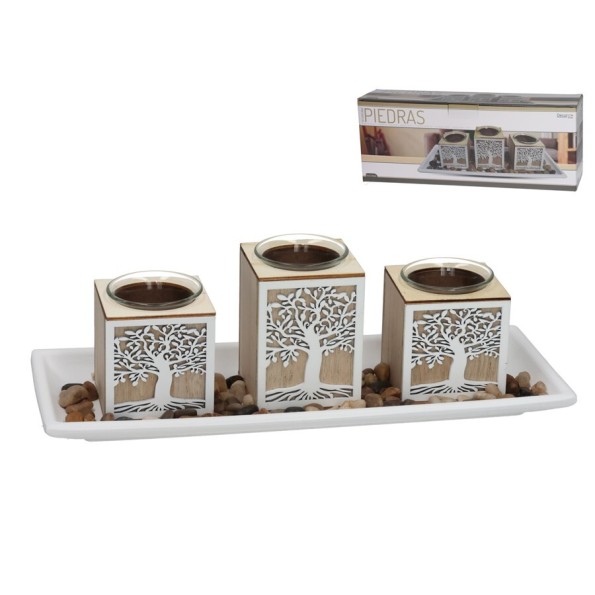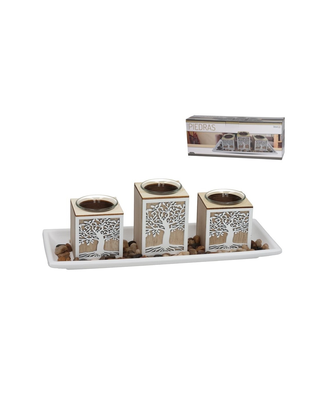 PORTAVELAS X3 3 DISEÑOS PIEDRA 34,2X13X11 CM