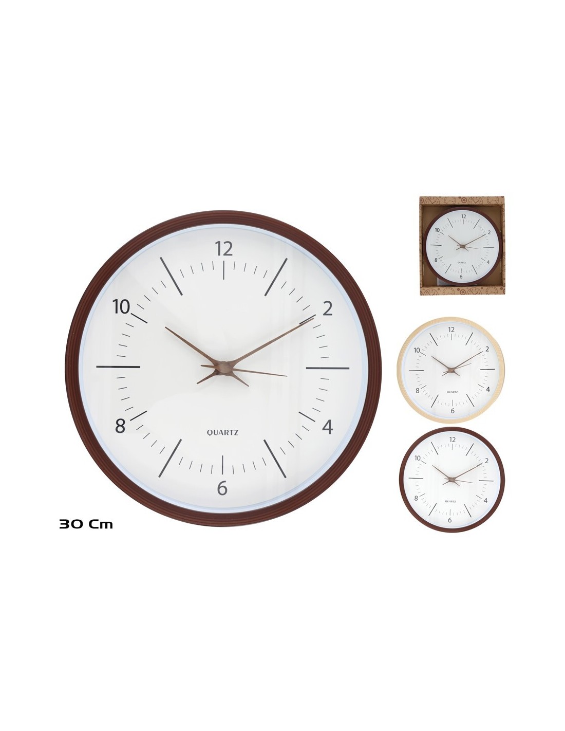 RELOJ PARED EFECTO MADERA LOY 30CM 2 SURT.
