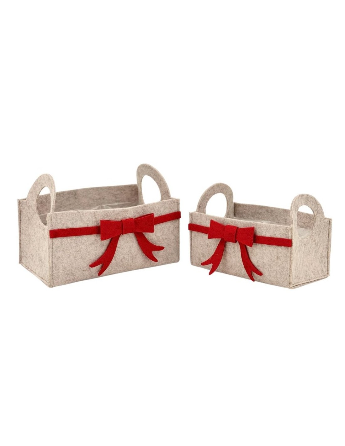 S/2 CESTAS FIELTRO CON LAZO ROJO S 19X10,5 H 13 B 22X13 H17