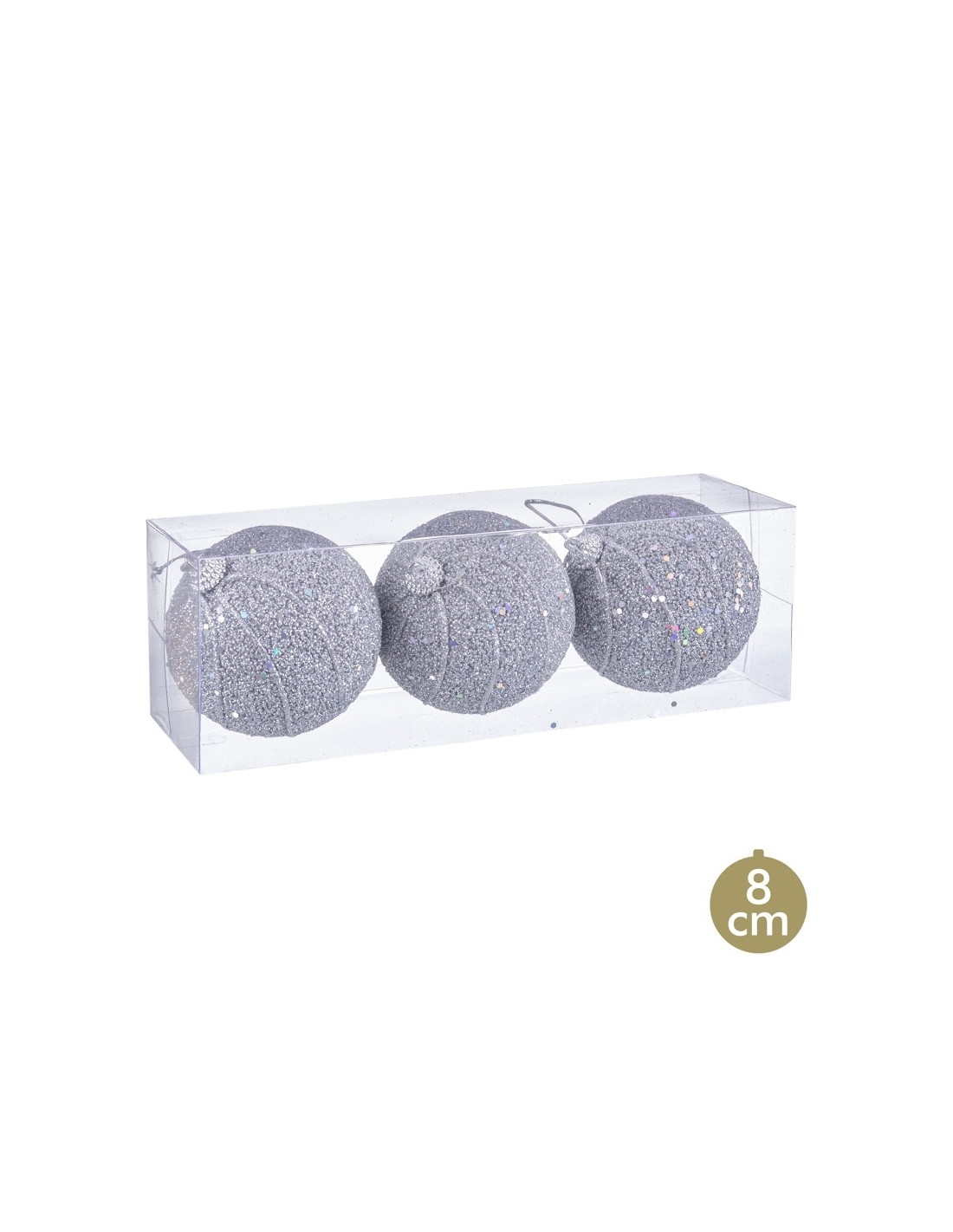S/3 BOLAS HILOS FOAM PLATA 8 X 8 X 8 CM