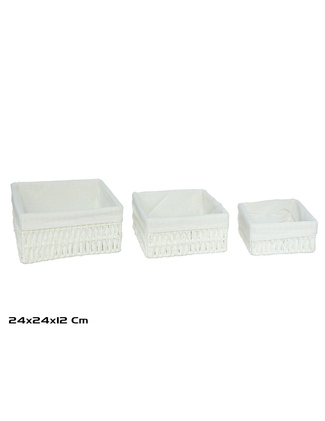 S/3 CESTAS RECT. ANA 24X24X12CM BLANCO