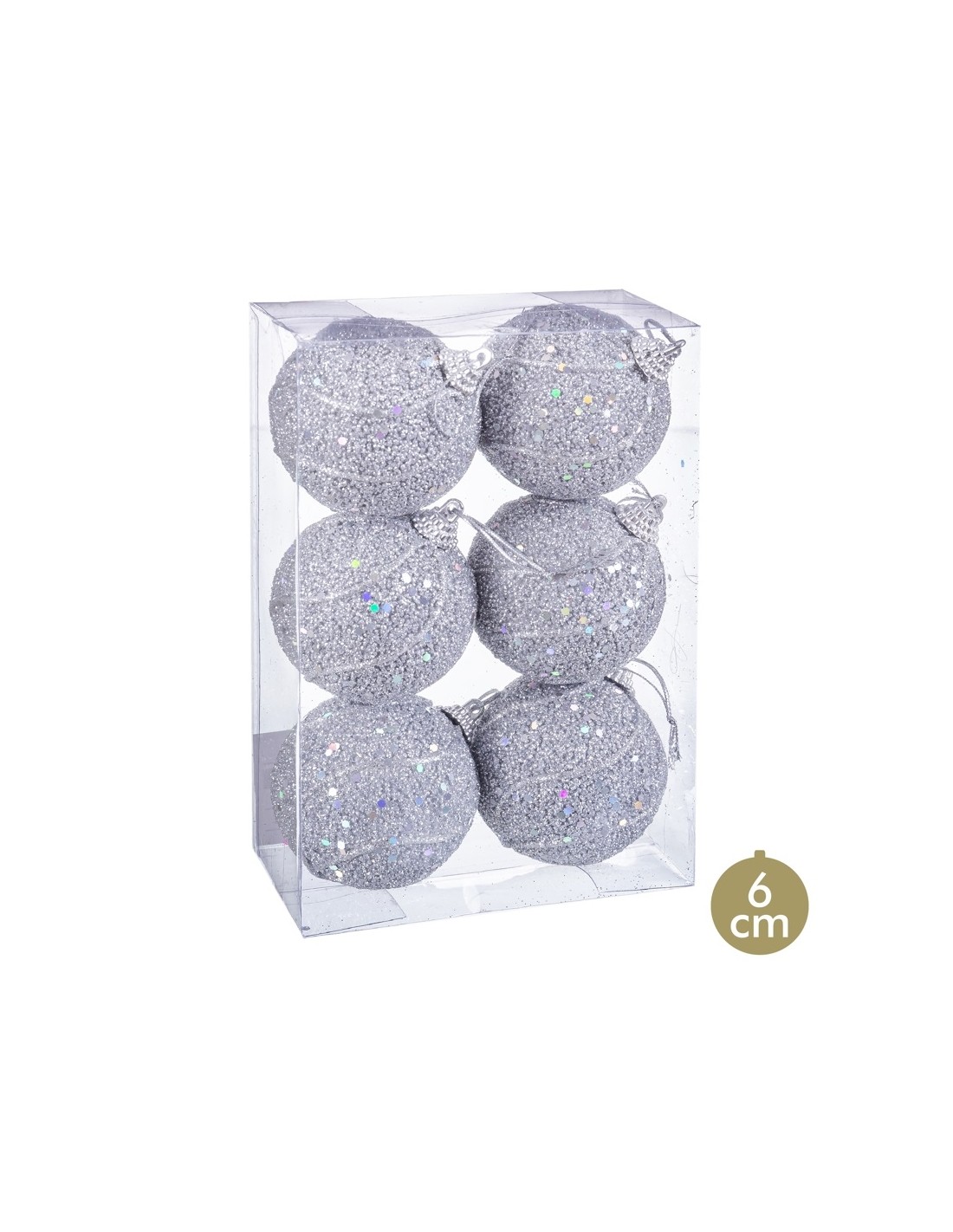 S/6 BOLAS HILOS FOAM PLATA 6 X 6 X 6 CM