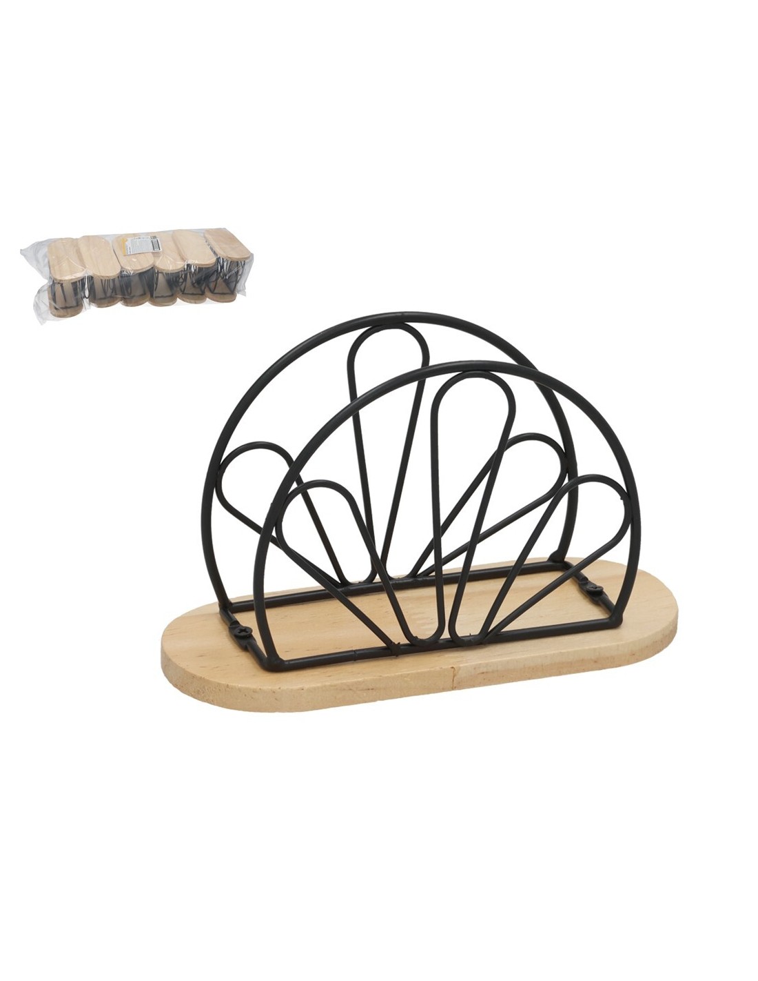 SERVILLETERO METAL+MADERA JEREZ 15X7.5X9.5CM NEGRO