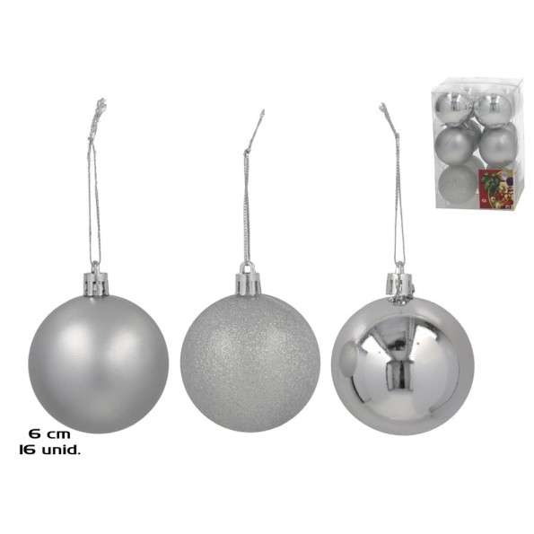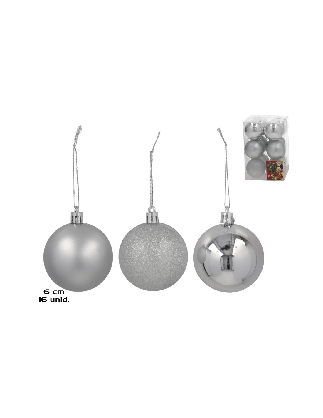 SET 12 BOLAS DE NAVIDAD PLATA 6CM 3 SURT