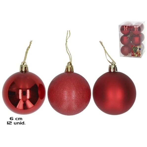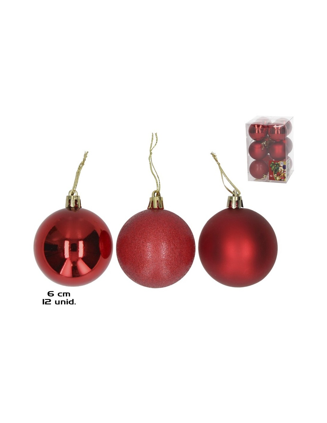 SET 12 BOLAS DE NAVIDAD ROJAS 6CM 3 SURT
