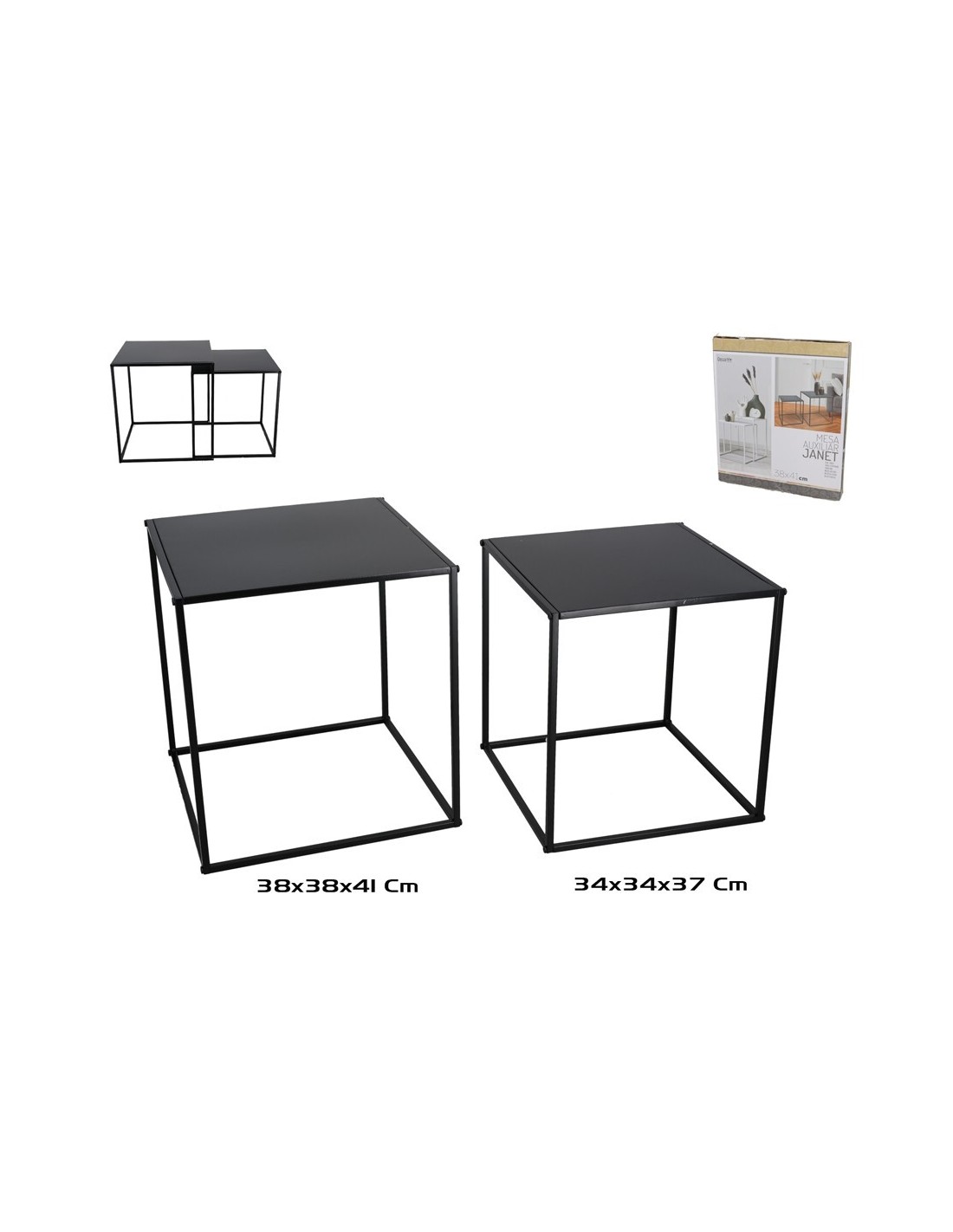 SET 2 MESAS AUXILIARES METAL JANET 38X38X41CM NEGRO