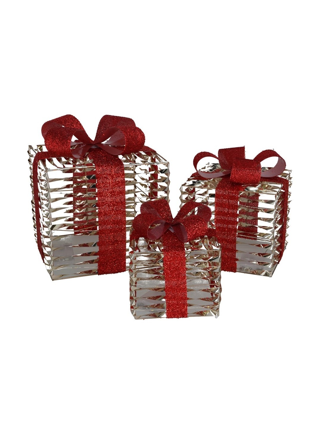 SET 3 CAJAS REGALO C/180 LUCES 25X25X28CM ORO
