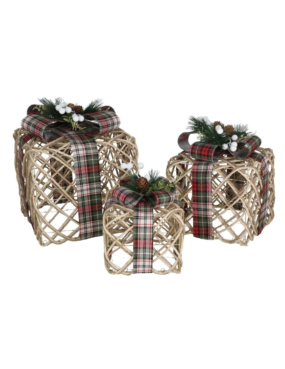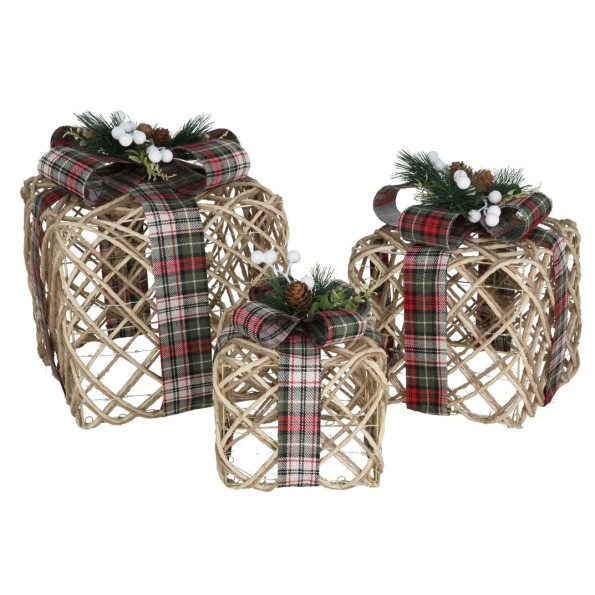 SET 3 CAJAS REGALO C/180 LUCES BETH 25X25X33CM NAT