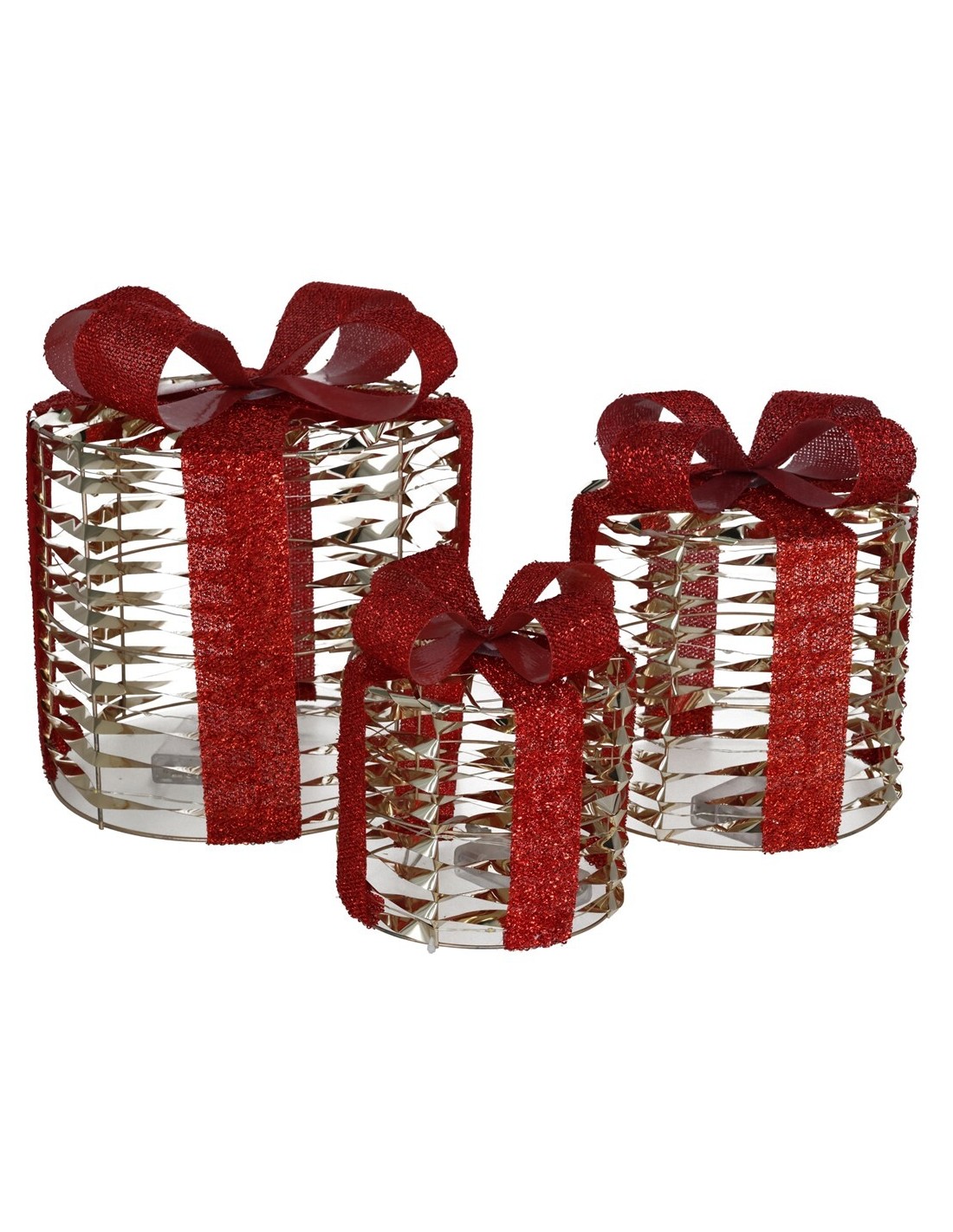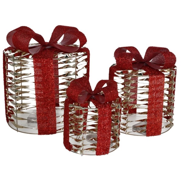 SET 3 CAJAS REGALO C/90 LUCES 25X25X28CM ORO