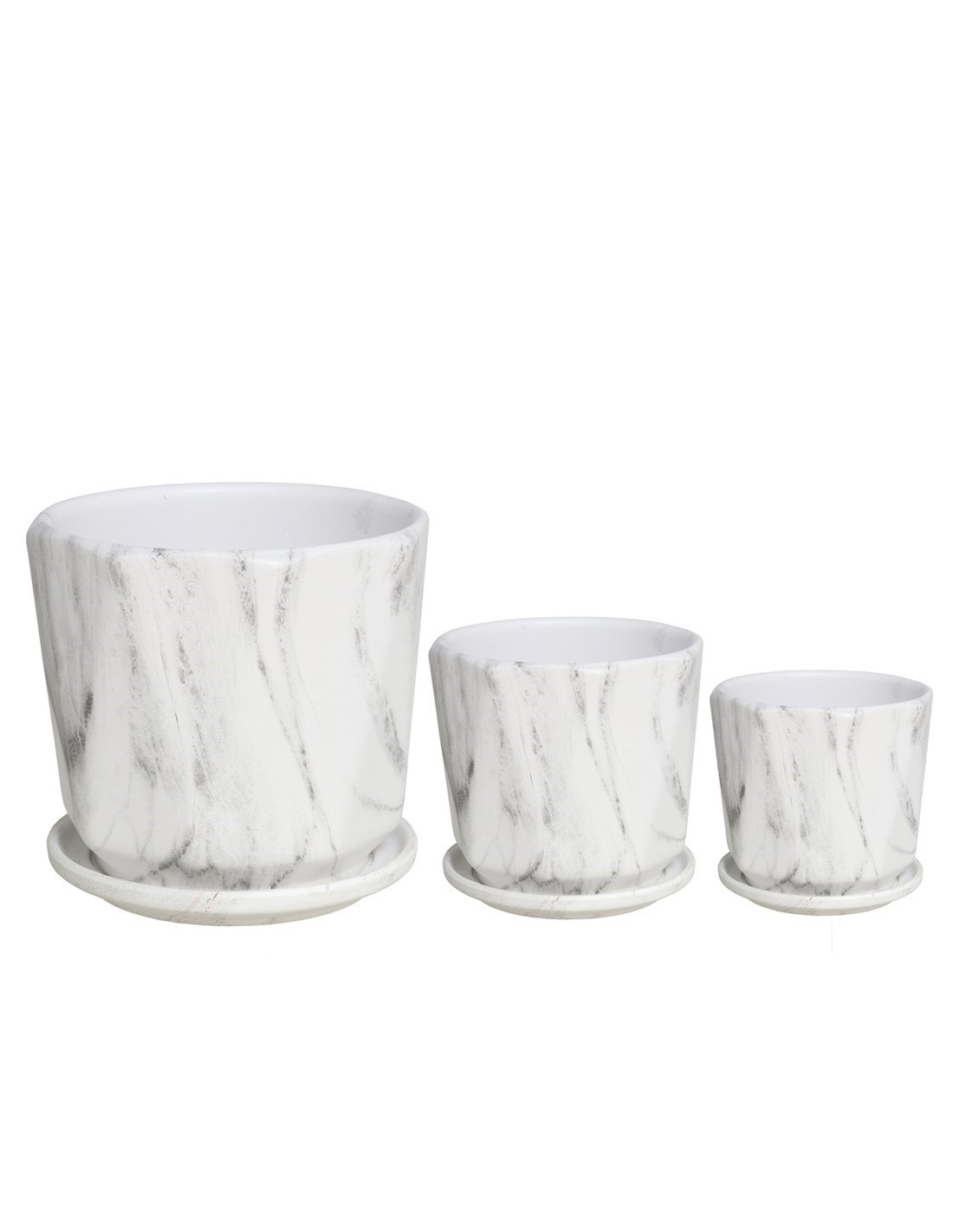 SET 3 MACETEROS C/PLATO EFEC MÁRMOL GRIS