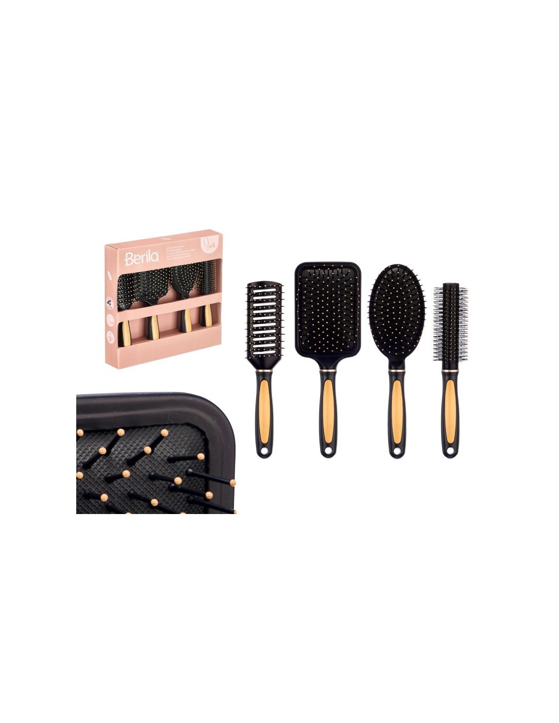 SET 4 CEPILLOS PELO NEGRO ACABADO BAMBU