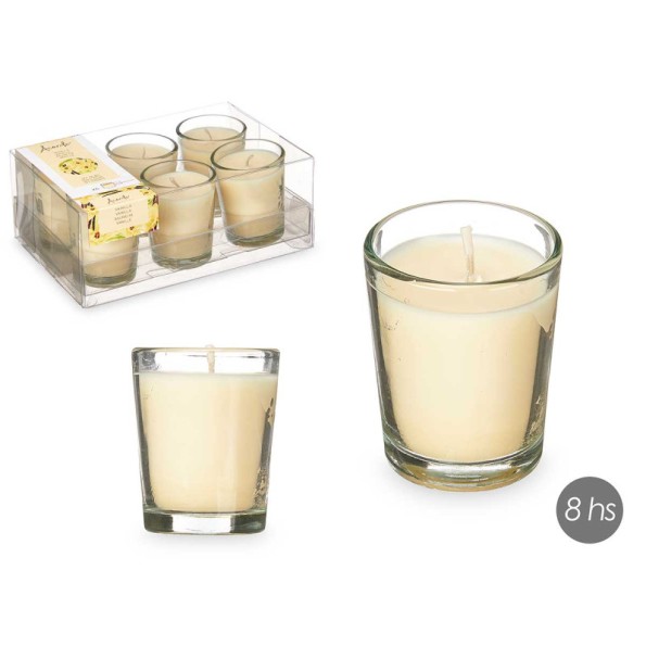SET 6 VELAS VASO VIDRIO VAINILLA