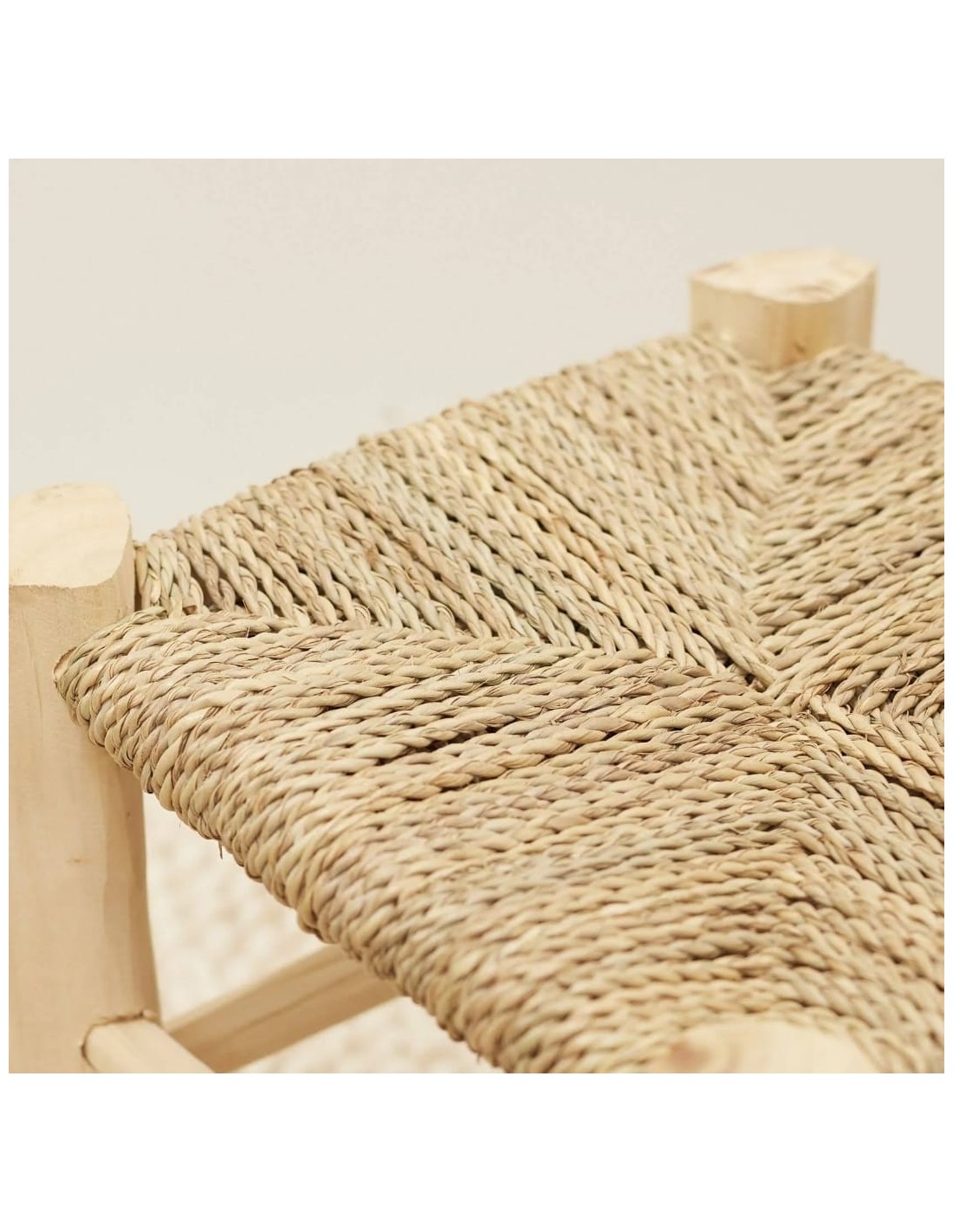 TABURETE BAJO MADERA Y FIBRA NATURAL ARTESANAL 35X35CM