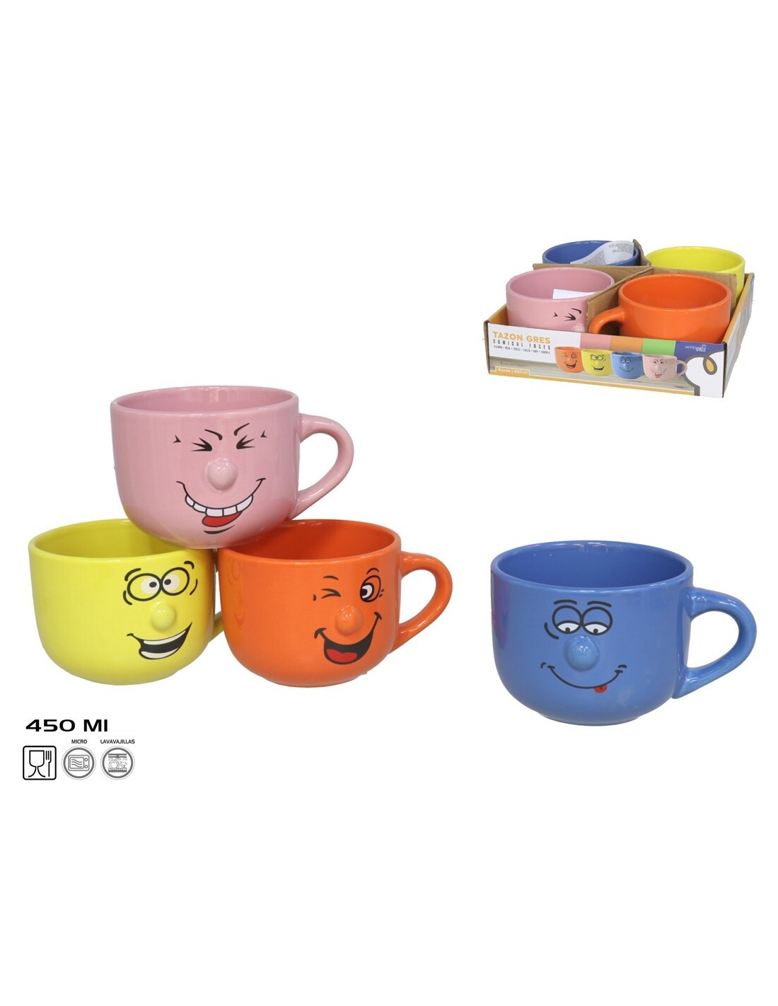 TAZON CERAMICA COMICAL FACES 450ML 4SURT.