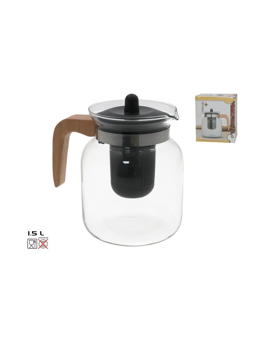 TETERA CRISTAL MANGO MADERA 1,5L CLOE