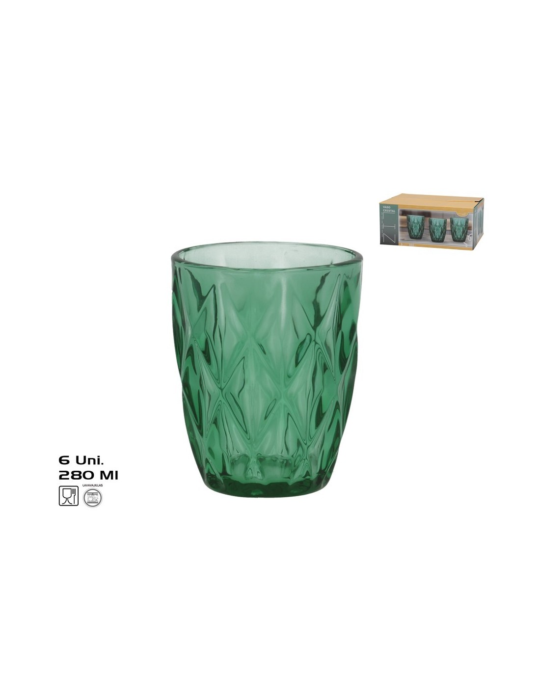 VASO CRISTAL LIZ X6 280ML VERDE