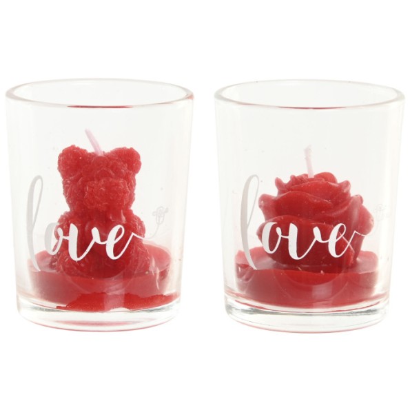 VELA CERA CRISTAL 5X5X6,5 30 GR. OSO ROSA 2 SURT.