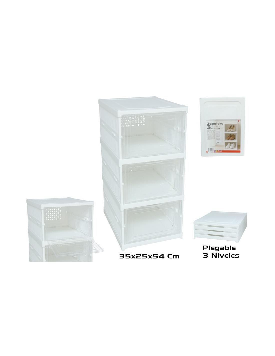 ZAPATERO PLEGABLE 3 NIVELES 35X25X54CM BLANCO